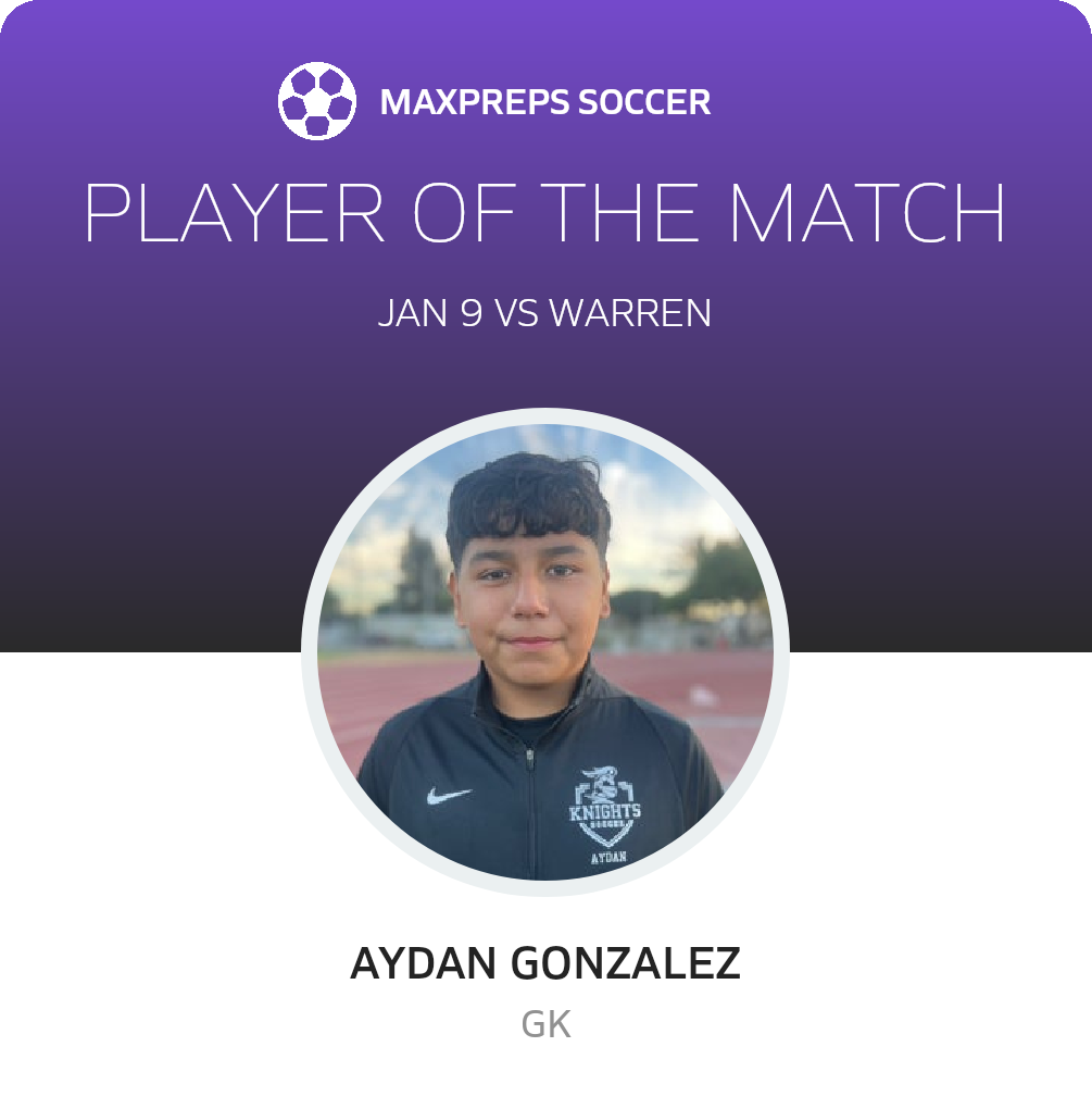 Congratulations to #1 Aydan Gonzalez for being selected the Lynwood Soccer Player of the Match.
