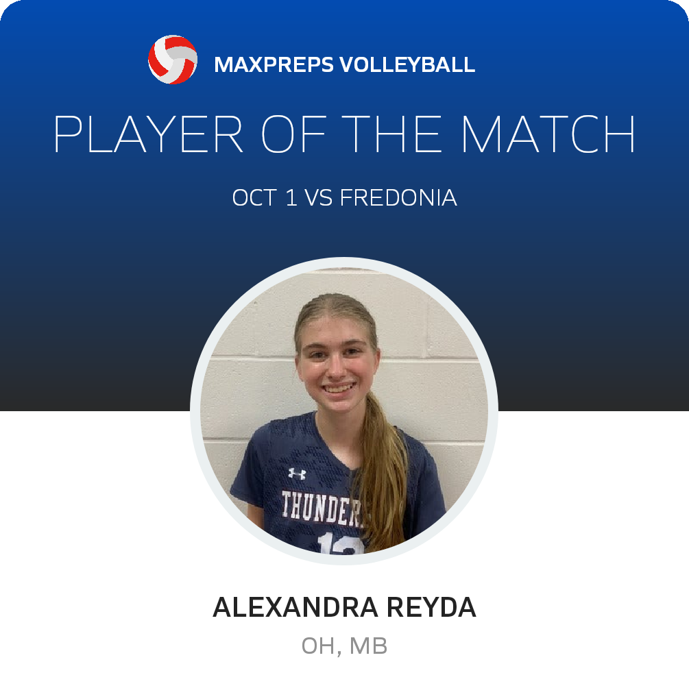 Congratulations to #12 Alexandra Reyda for being selected the Chautauqua Lake Volleyball Player of the Match.