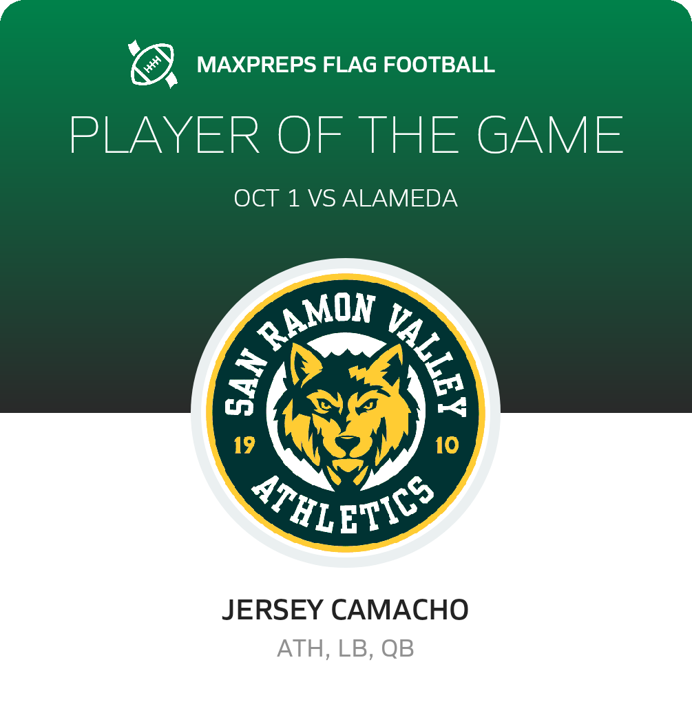 October 1, 2025: Danville, CA 94526 The San Ramon Valley Wolves (Danville, CA) flag football tipped the visiting Alameda Hornets (Alameda, CA), 13-12 in Wednesday's non-league outing.