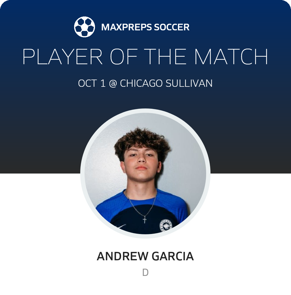 Congratulations to #19 Andrew Garcia for being selected the Chicago Academy Soccer Player of the Match.