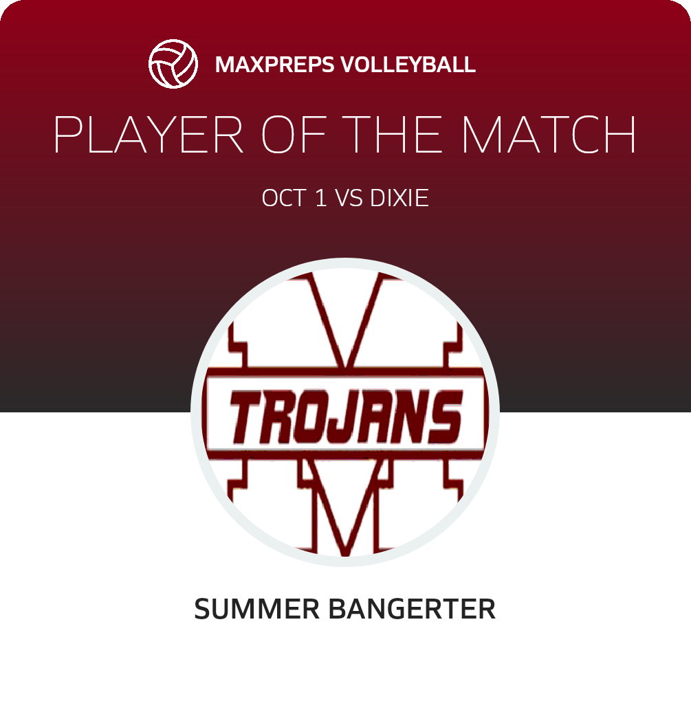 October 1, 2025: Morgan, UT 84050 The Morgan Trojans (Morgan, UT) volleyball held off the visiting Dixie Flyers (St. George, UT), 3-2 in Wednesday's non-league bout.