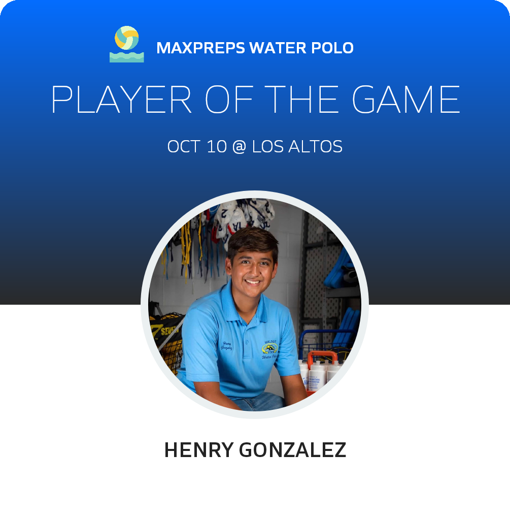 Congratulations to #17 Henry Gonzalez for being selected the Walnut JV Water Polo Player of the Game.
