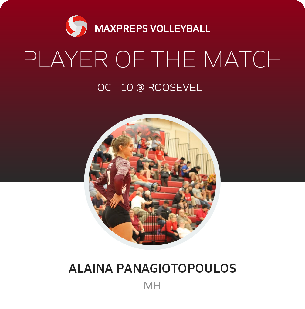 Congratulations to #10 Alaina Panagiotopoulos for being selected the South St. Paul Volleyball Player of the Match.