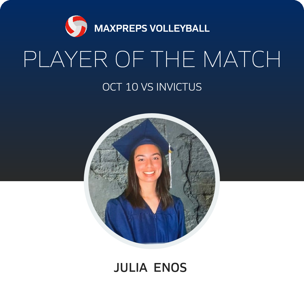 Congratulations to #4 Julia Enos for being selected the Mare Island Tech Academy Volleyball Player of the Match.