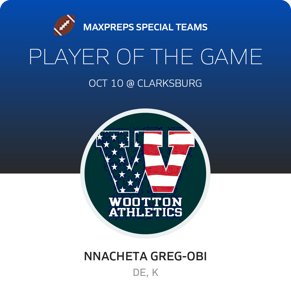 In their next game, the Patriots face the Watkins Mill Wolverines (Gaithersburg, MD) in a Montgomery County 4A - West challenge, on Friday, October 18. Wootton will attempt to improve on its 3-3 season record. The Wolverines enter the challenge with a 0-6 record after their 46-0 non-league loss to Blake (Silver Spring, MD).