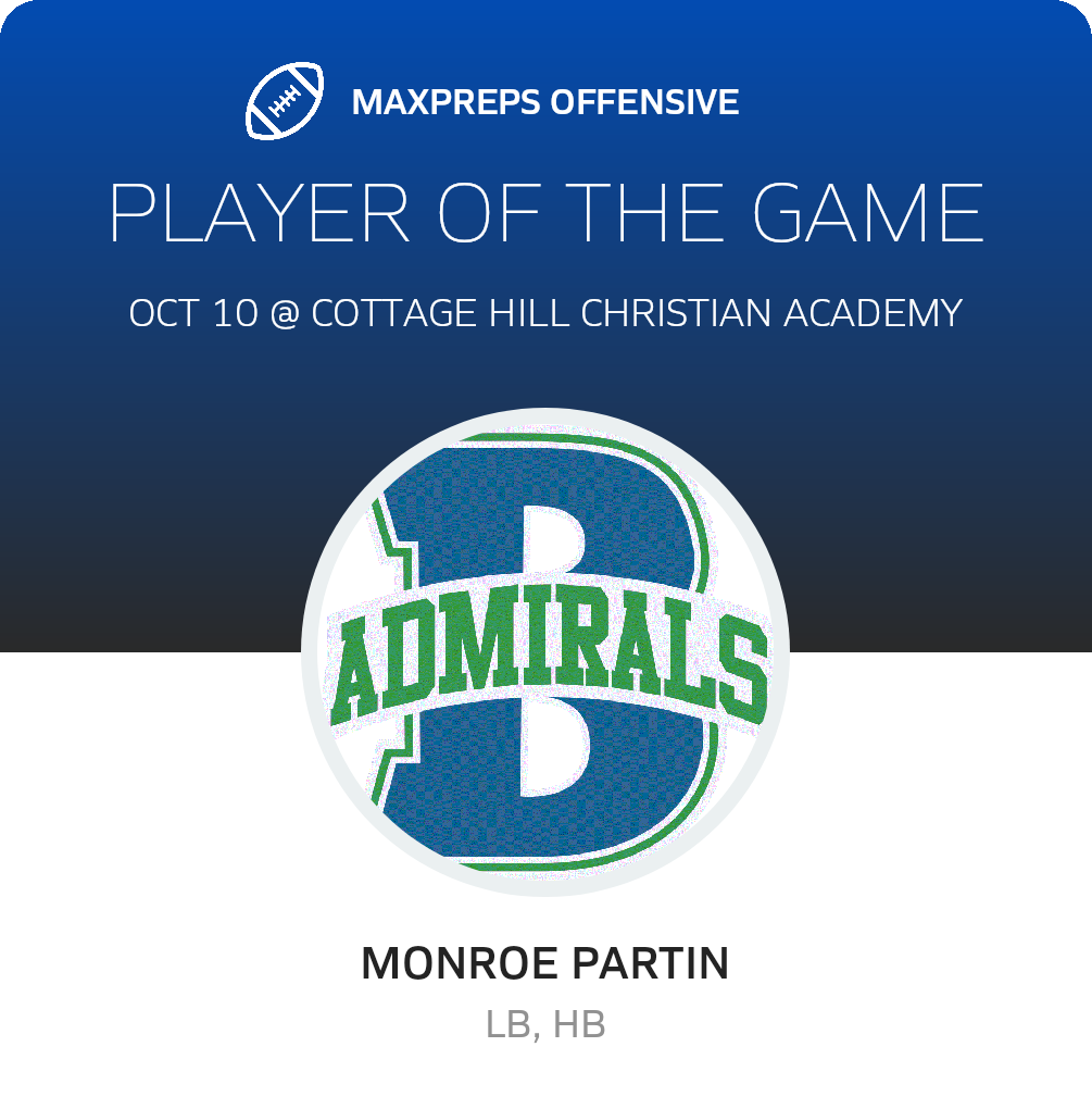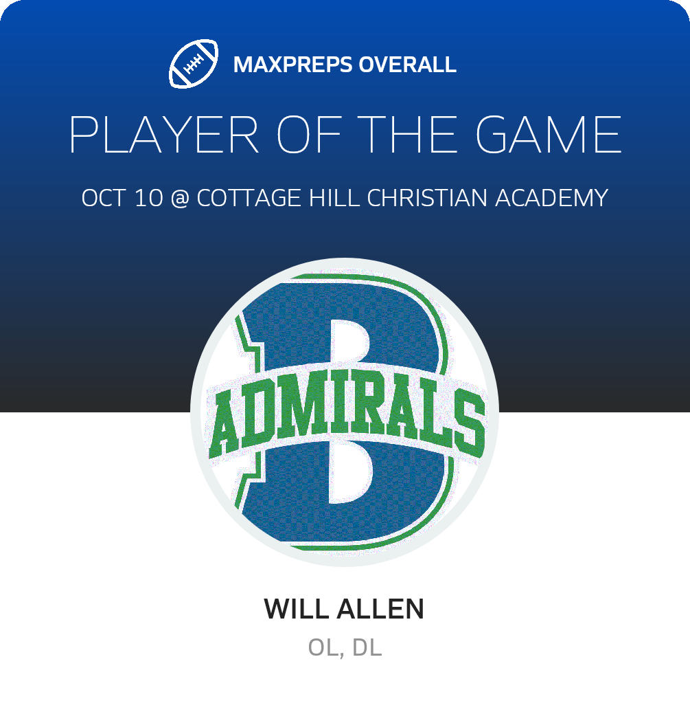 October 10, 2025: Mobile, AL 36695 In Friday's league match, the visiting Bayside Academy Admirals football squad scored a good 25-7 triumph over the Cottage Hill Christian Academy Warriors.