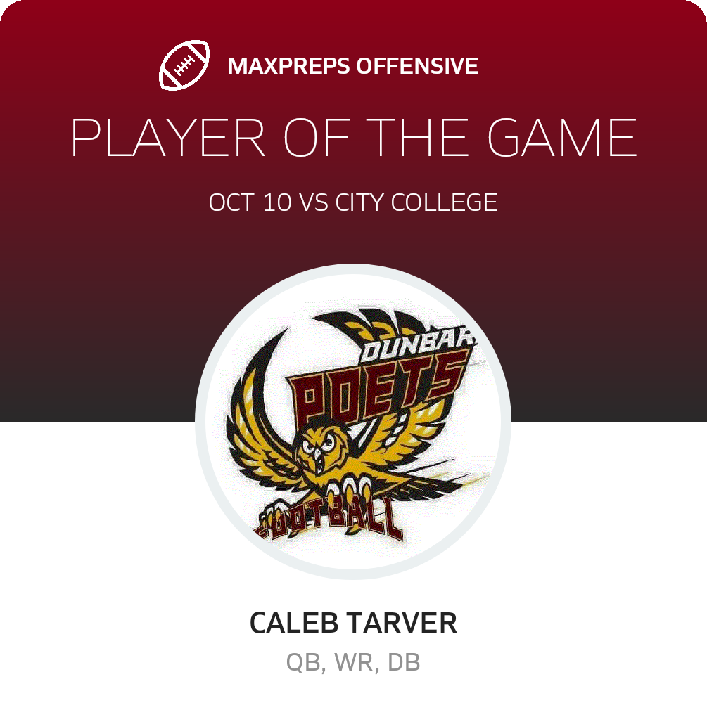 October 10, 2025: Baltimore, MD 21231 The Dunbar Poets (Baltimore, MD) football trounced the visiting City College Black Knights (Baltimore, MD), 54-0 in Friday's non-league outing.