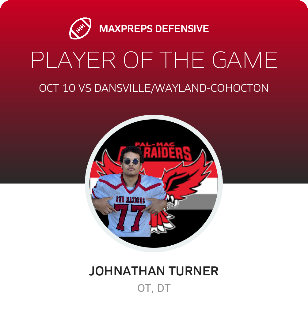 The Red Raiders (6-0) will now prepare for their contest against Penn Yan Academy/Dundee (Penn Yan, NY). The enter the Section 5 Wayne-Finger Lakes - East contest with a 6-0 record. In their last battle, Penn Yan Academy/Dundee walloped Newark/Marion (Newark, NY), 28-27, in a league battle.