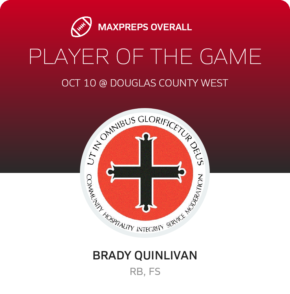 Congratulations to #7 Brady Quinlivan (overall), #27 Jedd Ramold (offensive), #9 Blaize Beller (defensive) and #53 Cole Rogge (special teams) for being selected the Mount Michael Benedictine Football Players of the Game.