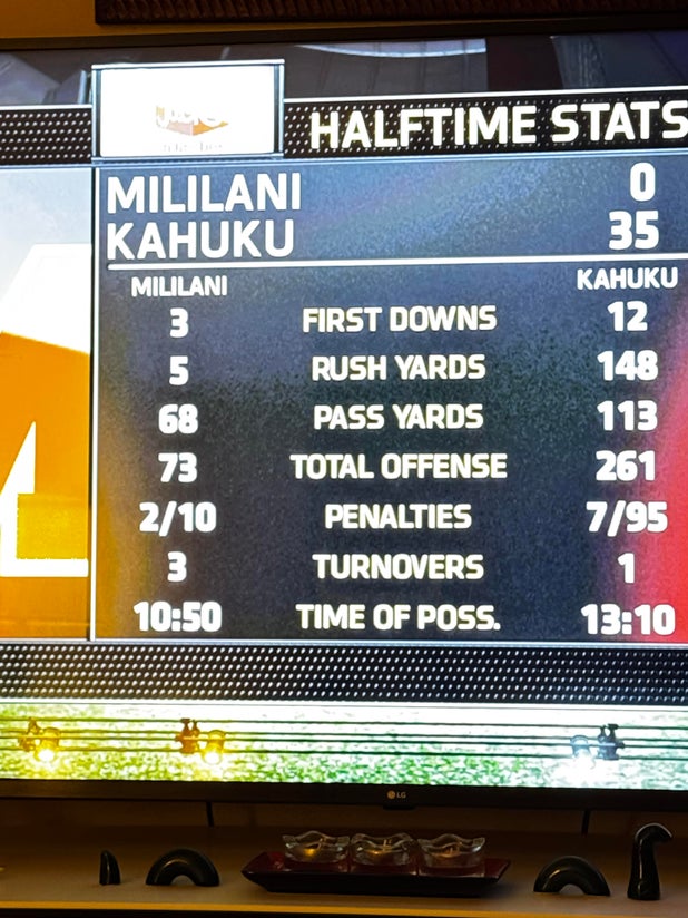 October 10, 2025: Kahuku, HI 96731 The Kahuku Red Raiders (Kahuku, HI) football knocked off the visiting Mililani Trojans (Mililani, HI), 45-20 in Friday's league outing.