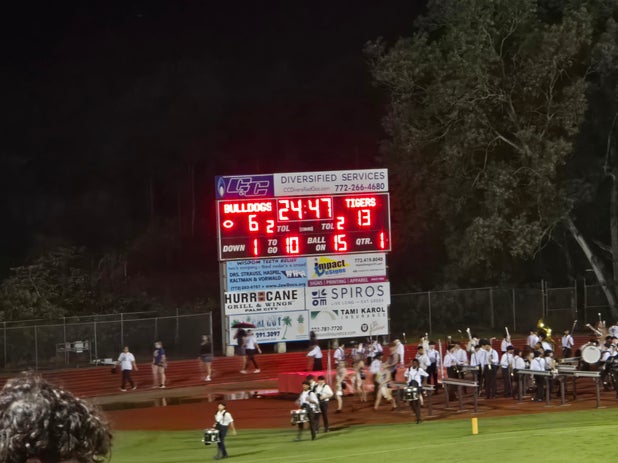 October 10, 2025: Stuart, FL 34997 Martin County Tigers (Stuart, FL) followers went home in high spirits Friday as they saw their football team tip the host South Fork Bulldogs (Stuart, FL), 13-6 in a league match.