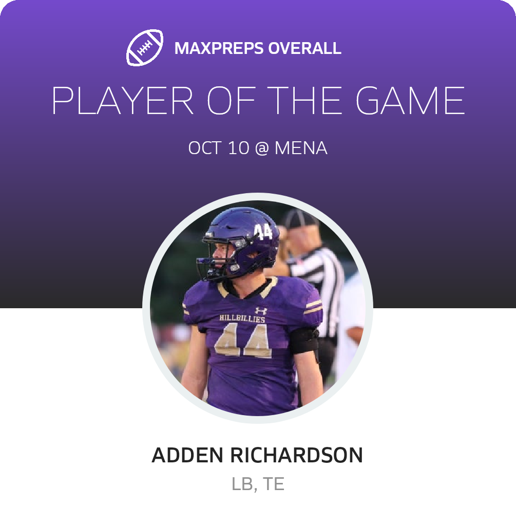 October 10, 2025: Mena, AR 71953 In Friday's league game, the Ozark Hillbillies (Ozark, AR) football team overcame the host Mena Bearcats (Mena, AR), by a tally of 36-28.