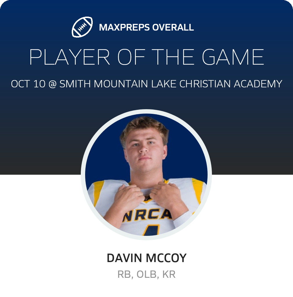 October 10, 2025: Moneta, VA 24121 The North Raleigh Christian Academy Knights felled the host Smith Mountain Lake Christian Academy Ospreys football team by a score of 49-20 in Friday's non-league challenge.