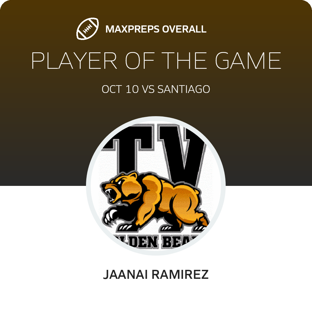 With the win, Temecula Valley advances its record to 4-3 on the season. The Golden Bears host King (Riverside, CA) to encounter the Wolves in a Big West - Lower bout on Friday, October 17. The Wolves go into the bout with a record of 5-2. King won 37-0 in their recent league match against Corona (Corona, CA)