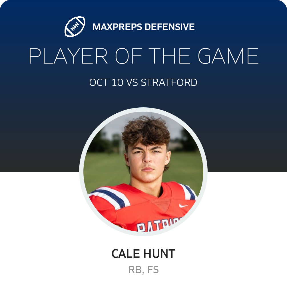 October 10, 2025: White House, TN 37188 The White House-Heritage Patriots (White House, TN) football knocked off the visiting Stratford Spartans (Nashville, TN), 19-3 in Friday's league outing.