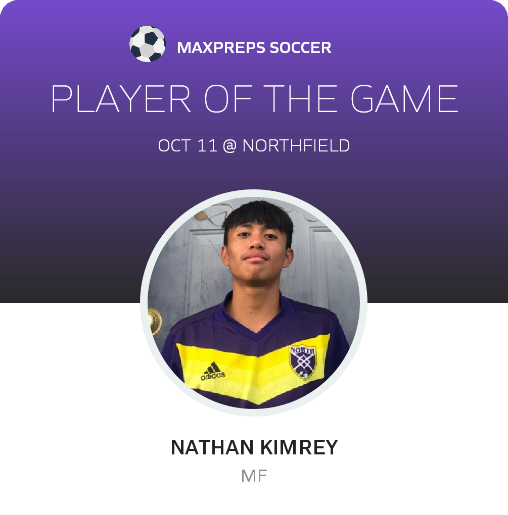 Congratulations to #10 Nathan Kimrey for being selected the Denver North JV Soccer Player of the Match.
