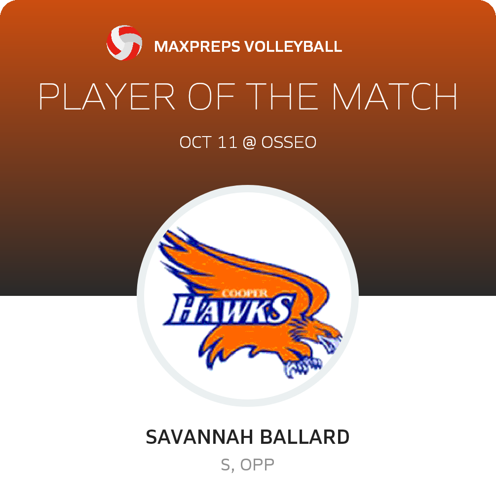 Congratulations to #2 Savannah Ballard for being selected the Robbinsdale Cooper Volleyball Player of the Match.