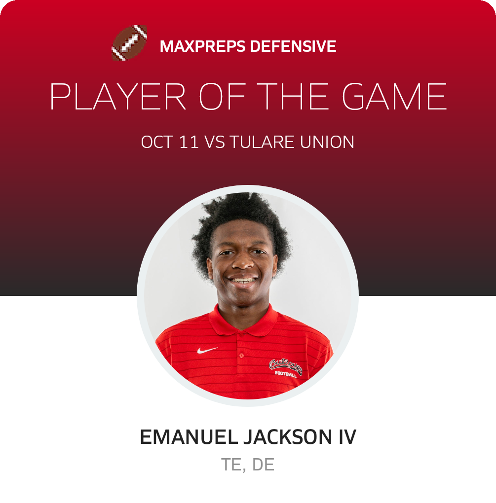With the win, Hanford advances its record to 7-0 on the season. The Bullpups travel to Tulare Western (Tulare, CA) to encounter the Mustangs in a West Yosemite bout on Thursday, October 17. The Mustangs go into the bout with a record of 6-1. Tulare Western won 39-15 in their recent league bout against Dinuba (Dinuba, CA)