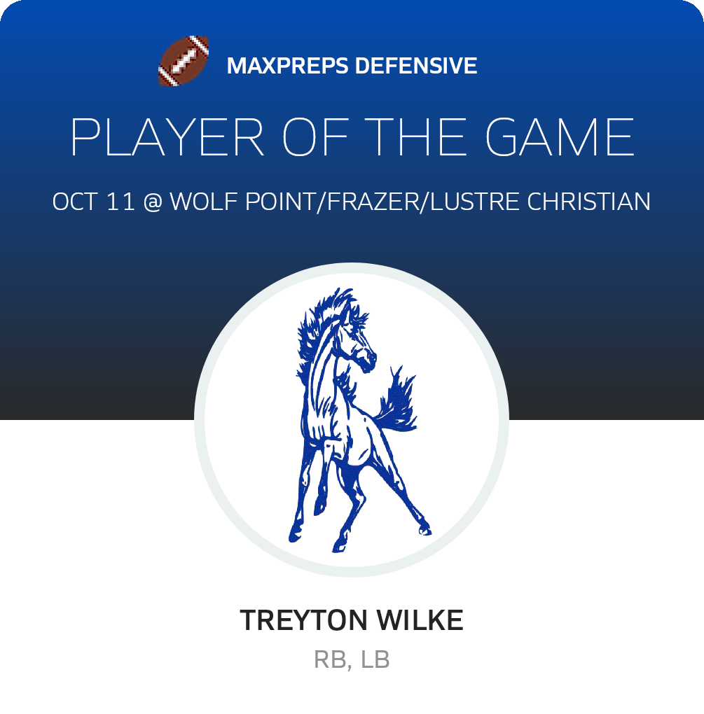 October 11, 2024: Wolf Point, MT Malta/Whitewater/Saco/Dodson Mustangs (Malta, MT) followers went home in high spirits Friday as they saw their football team triumph over the host Wolf Point/Frazer/Lustre Christian (Wolf Point, MT), 46-8 in a league battle.