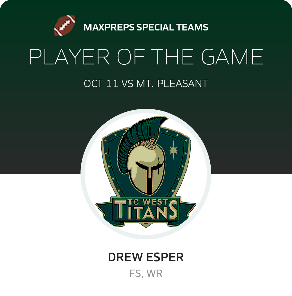 The Titans now sport a 4-3 record. They take the field next when they host Bay City Western for a Saginaw Valley - North outing on Friday, October 18. Traverse City West will clash with a Warriors squad coming off a 12-10 league loss to Traverse City Central (Traverse City, MI). The Warriors record now stands at 2-5.