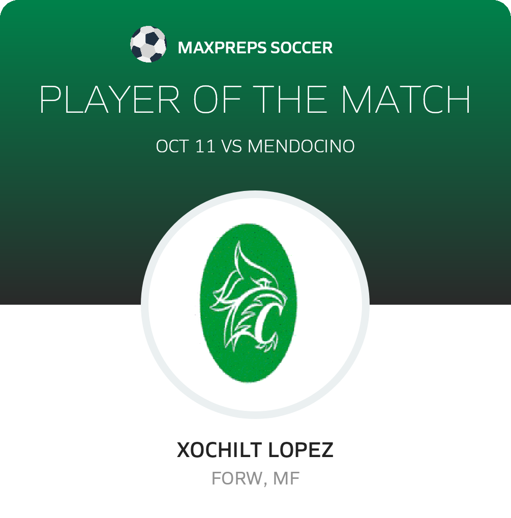 Congratulations to #3 Xochilt Lopez for being selected the Calistoga Girls Soccer Player of the Match.