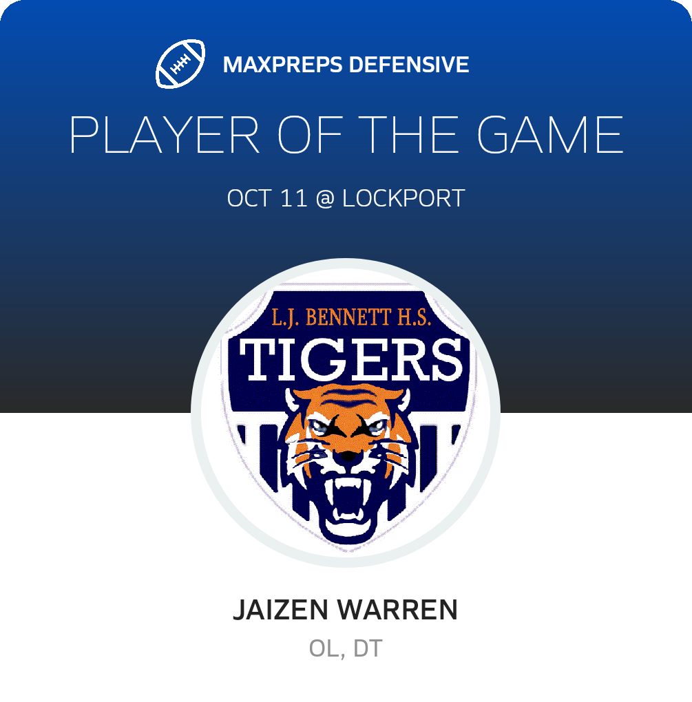 With the win, Lewis J. Bennett/Olmsted/Middle Early College/East advances its record to 5-1 on the season. The Tigers host Lancaster (Lancaster, NY) to confront the Legends in a Section 6 AA contest on Friday, October 17. The Legends enter the contest with a record of 5-1. Lancaster won 42-28 in their recent league contest against Niagara Falls (Niagara Falls, NY)