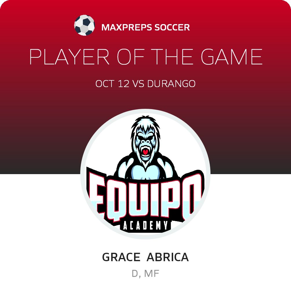 Congratulations to #6 Grace Abrica for being selected the Equipo Academy Girls Soccer Player of the Match.
