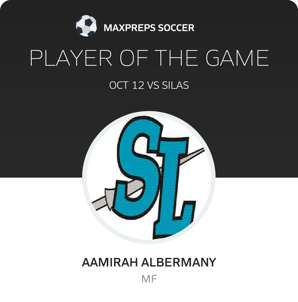 Congratulations to #21 Aamirah Albermany for being selected the Spanaway Lake Girls Soccer Player of the Match.