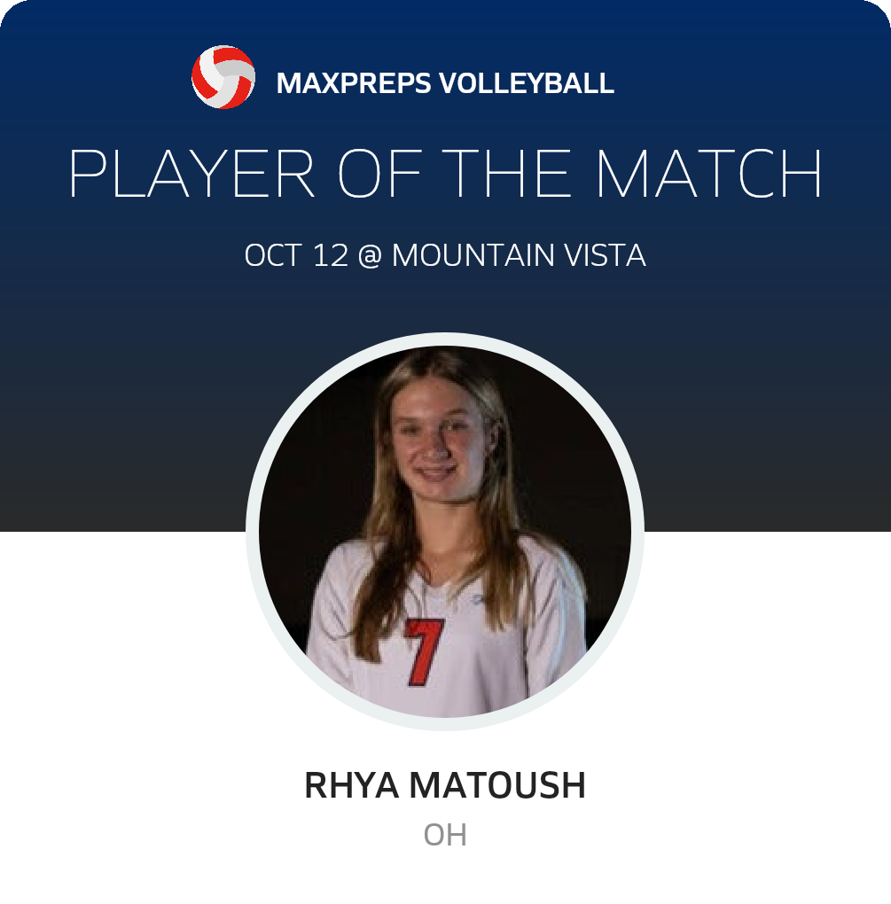 October 12, 2023: Highlands Ranch, CO 80126 The Legend Titans volleyball team scored 2 points and limited the host Mountain Vista Golden Eagles to 0 in the Titans league victory on Thursday.
