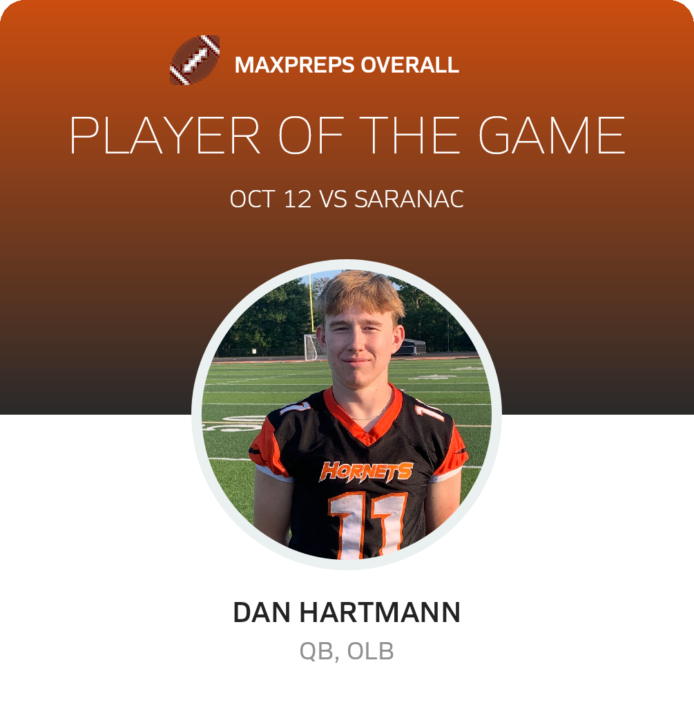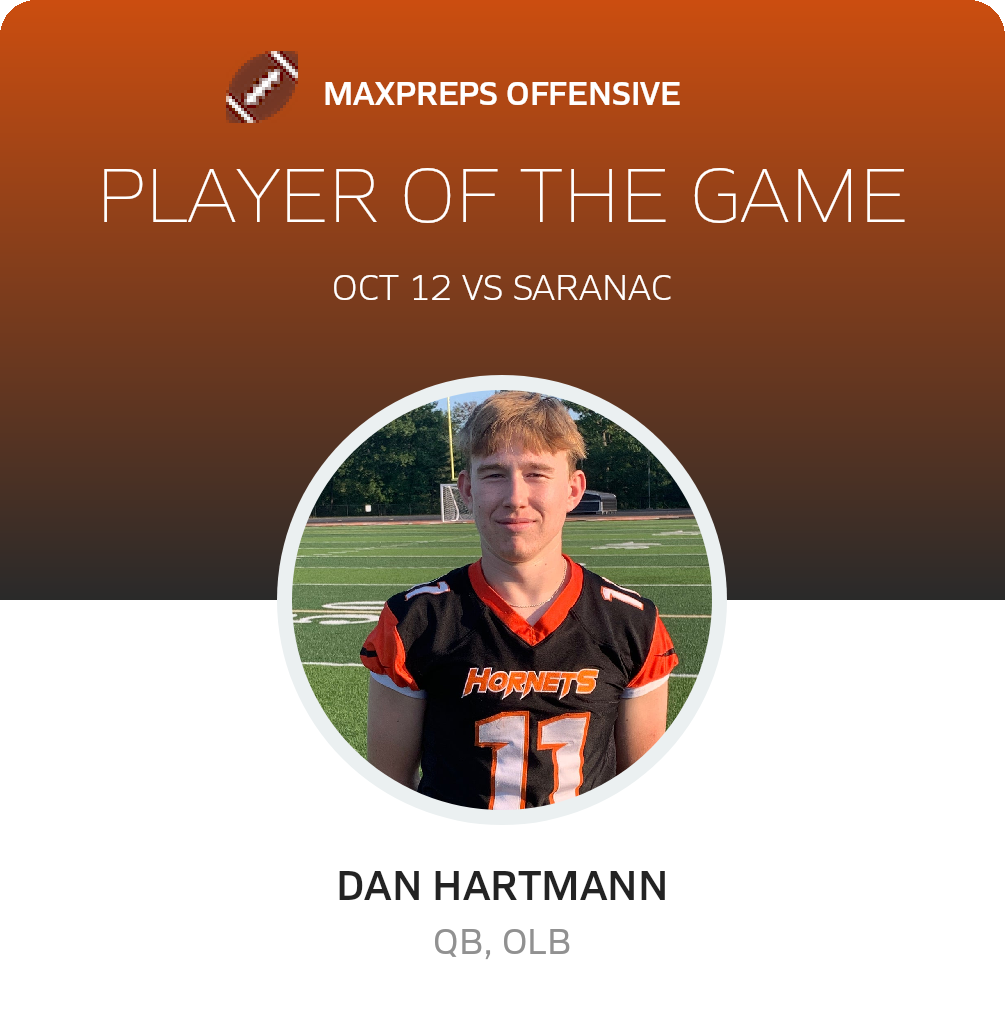 October 12, 2024: Plattsburgh, NY 12901 The Plattsburgh Hornets (Plattsburgh, NY) football tipped the visiting Saranac Spartans (Saranac, NY), 28-22 in Saturday's league outing.