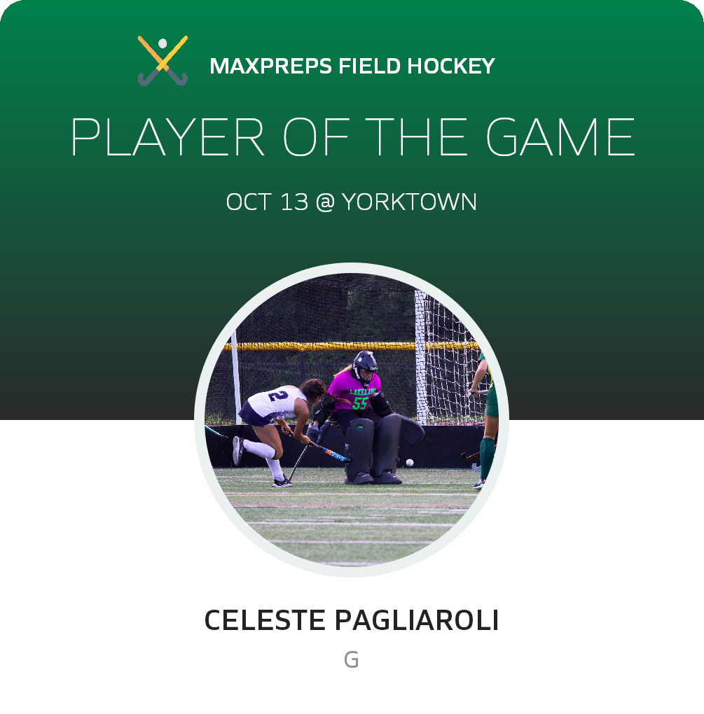 Congratulations to #55 Celeste Pagliaroli for being selected the Lakeland Field Hockey Player of the Game.