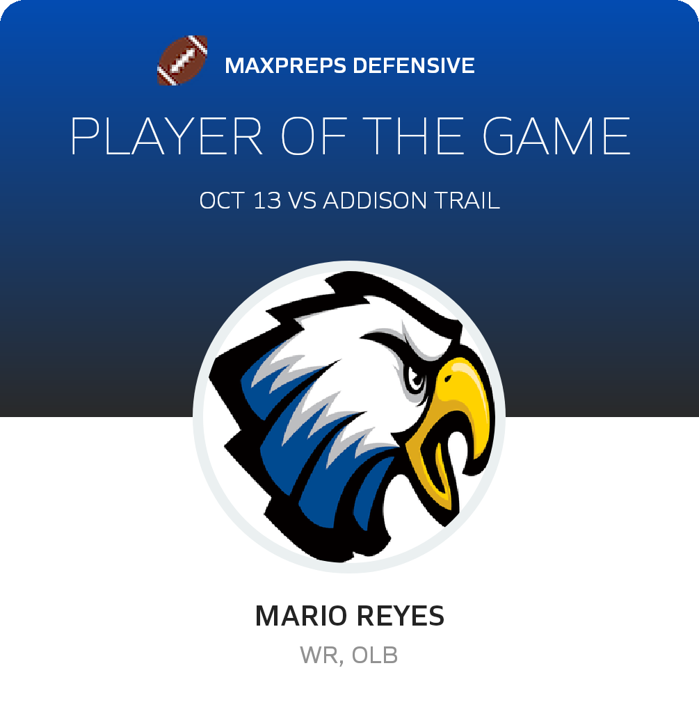 In their next game, the Eagles face the Downers Grove South Mustangs (Downers Grove, IL) in a West Suburban - Gold bout, on Saturday, October 22. Leyden will attempt to move on its 2-6 season record. The Mustangs enter the bout with a 5-3 record after their 37-14 league win over Berwyn/Cicero Morton (Cicero, IL).