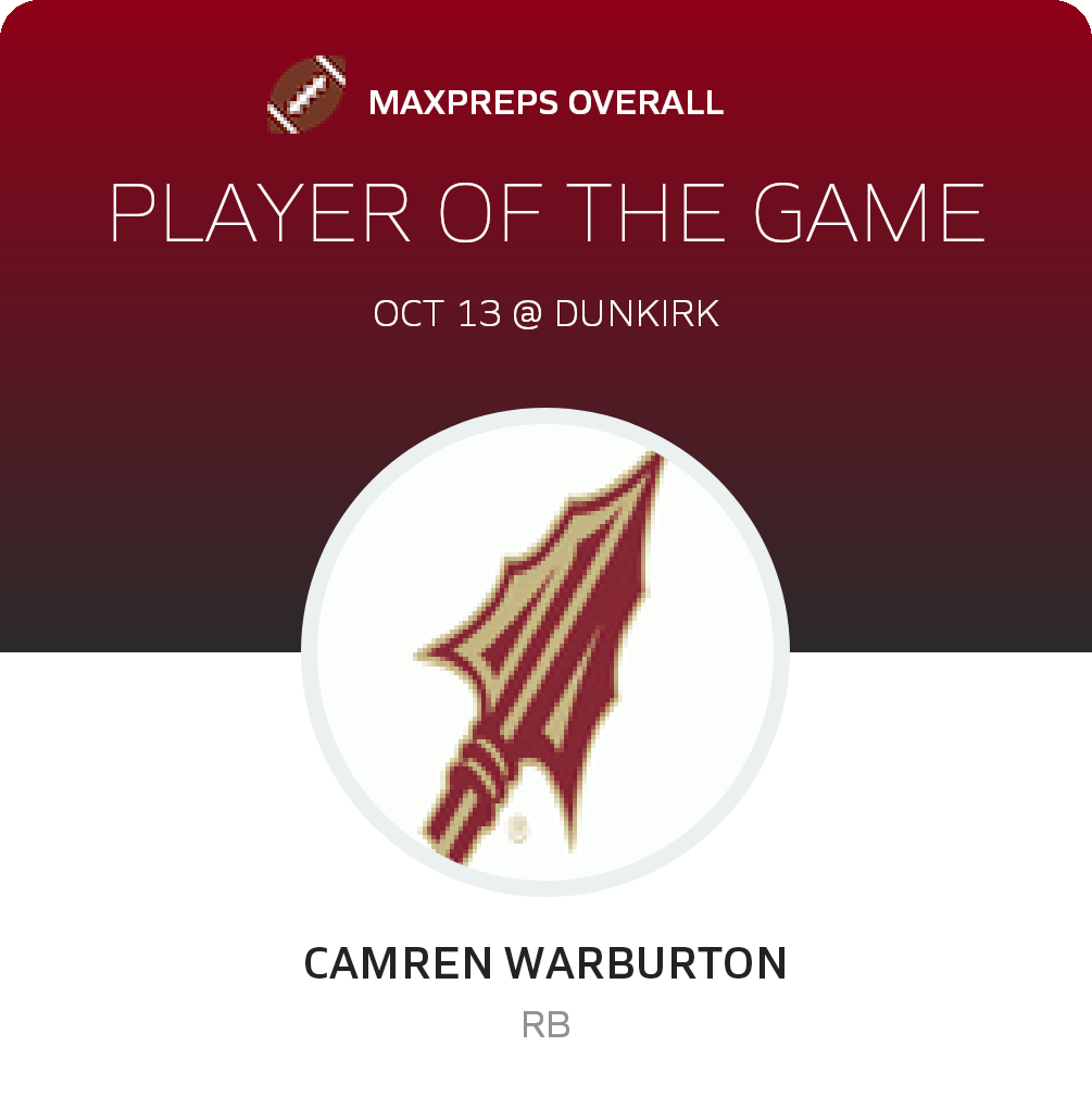 In their next game, the Warriors face the Maryvale Flyers (Cheektowaga, NY) in a Section 6 B - 2 bout, on Friday, October 21. Cheektowaga will attempt to move on its 4-3 season record. The Flyers enter the bout with a 7-0 record after their 35-19 league win over Olean (Olean, NY).