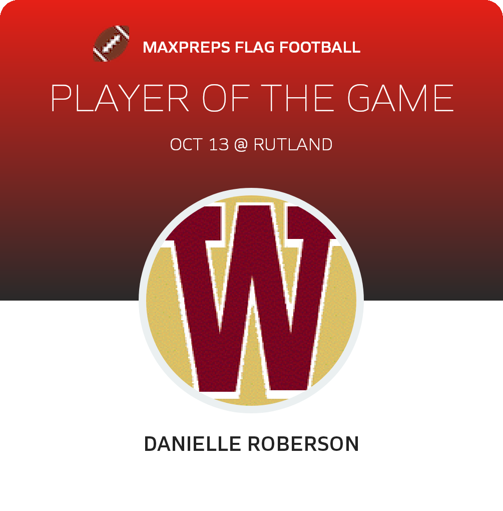 Congratulations to #3 Danielle Roberson for being selected the Westside Girls Flag Football Player of the Game.