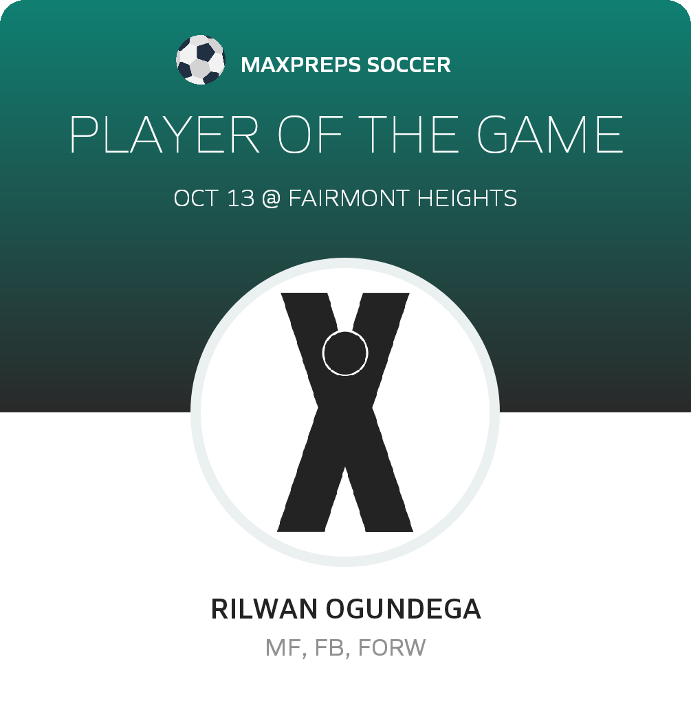 Congratulations to #8 Rilwan Ogundega for being selected the International High School at Largo Soccer Player of the Match.