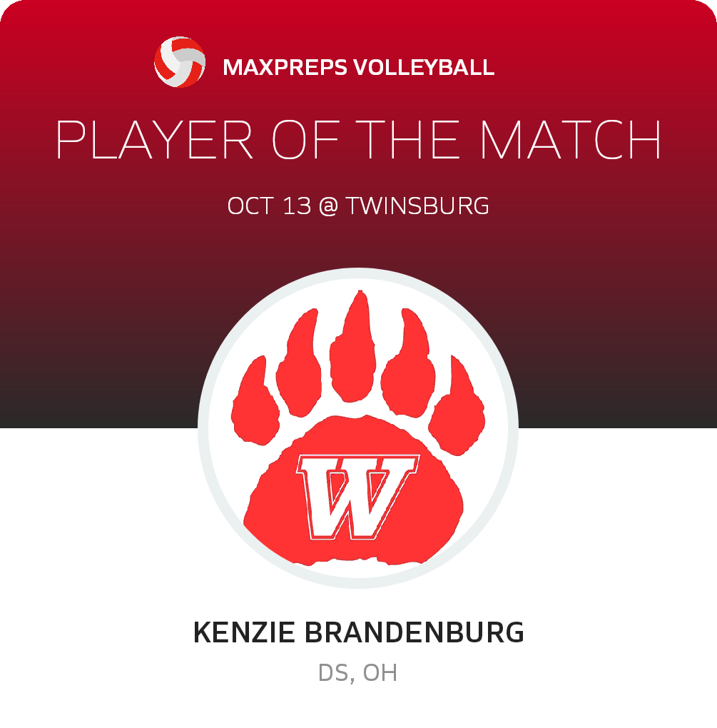 Congratulations to #14 Kenzie Brandenburg for being selected the Wadsworth Volleyball Player of the Match.