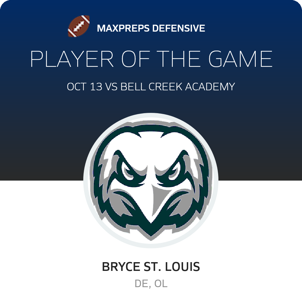 October 13, 2023: Ocoee, FL 34787 The Legacy Charter Eagles (Ocoee, FL) football edged the visiting Bell Creek Academy Panthers (Riverview, FL), 7-0 in Friday's non-league bout.