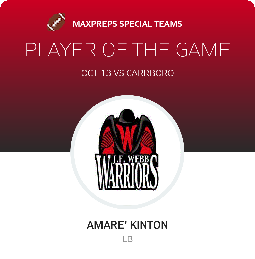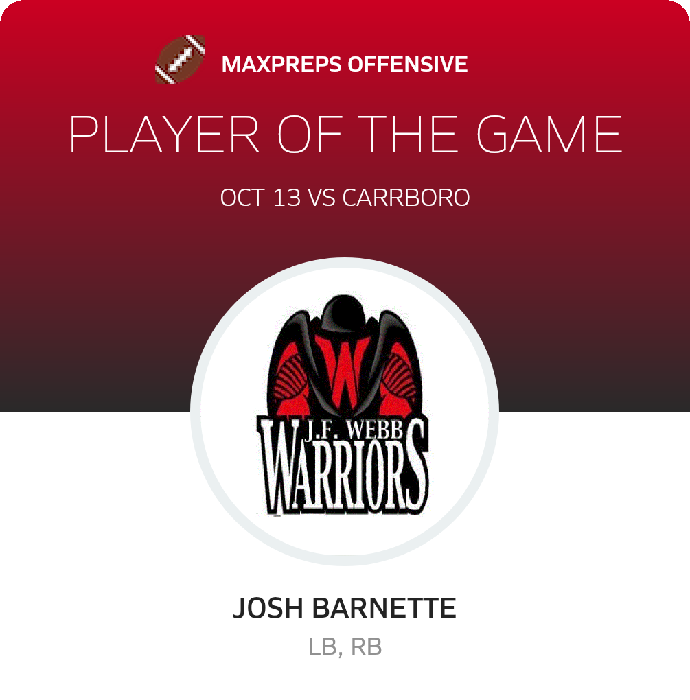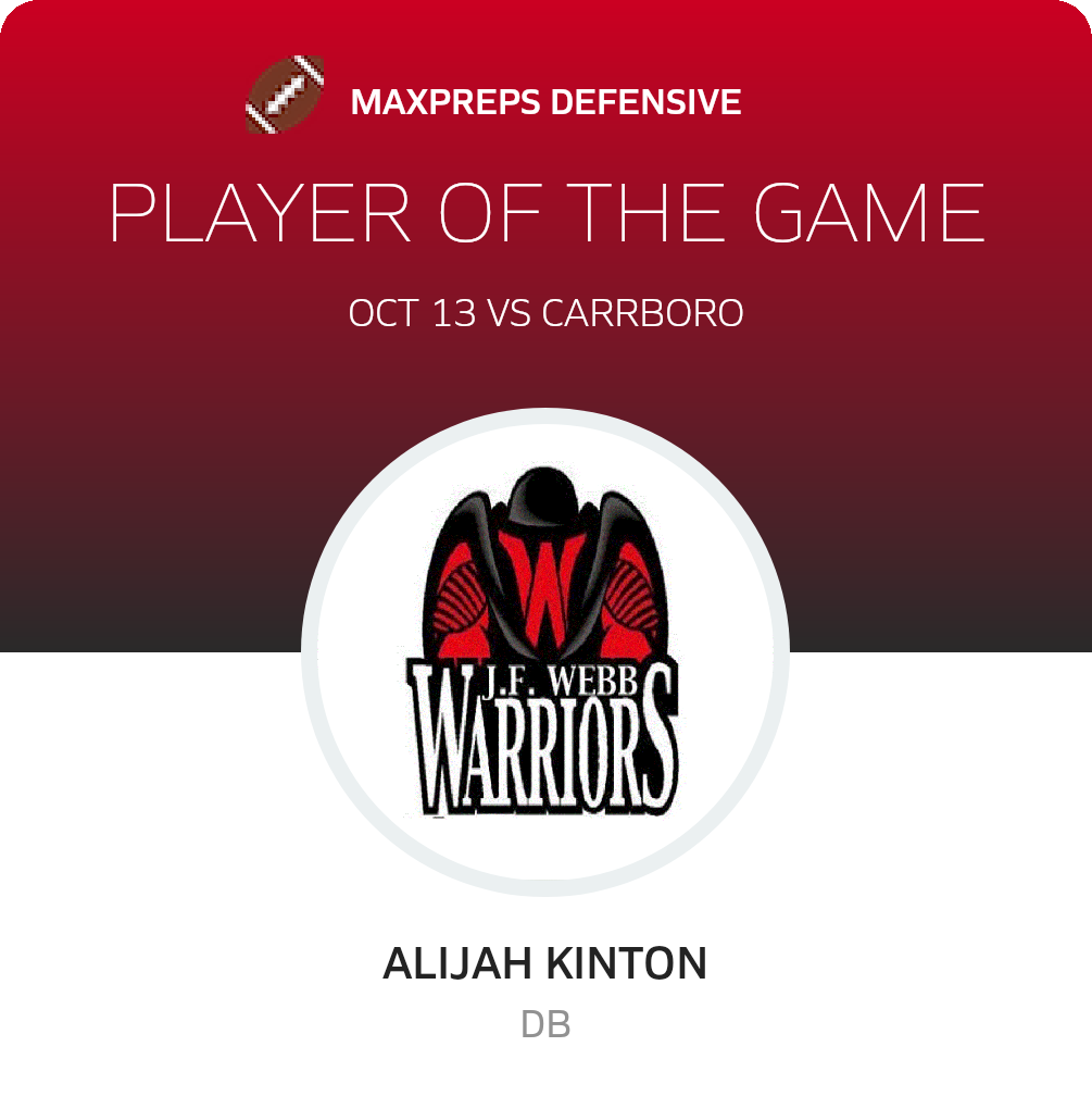 The Warriors now possess a 5-3 record. They play next when they travel to South Granville for a 2A/3A Northern Lakes battle on Friday, October 20. J.F. Webb will play a Vikings squad coming off a 20-7 league loss to Louisburg (Louisburg, NC). The Vikings record now stands at 3-5.