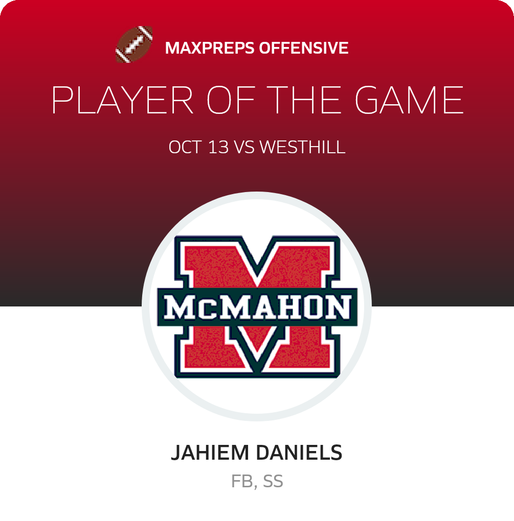 In their next game, the Senators face the Warde Mustangs (Fairfield, CT) in a Fairfield County - East bout, on Friday, October 20. McMahon will attempt to move on its 3-2 season record. The Mustangs enter the bout with a 0-5 record after their 35-13 non-league loss to Trumbull (Trumbull, CT).