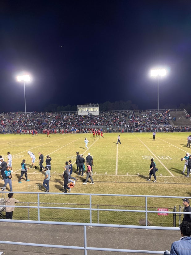 October 13, 2023: Winston-Salem, NC 27127 The Reagan Raiders (Pfafftown, NC) football nudged the host Parkland Mustangs (Winston-Salem, NC), 28-27 in Friday's league bout.