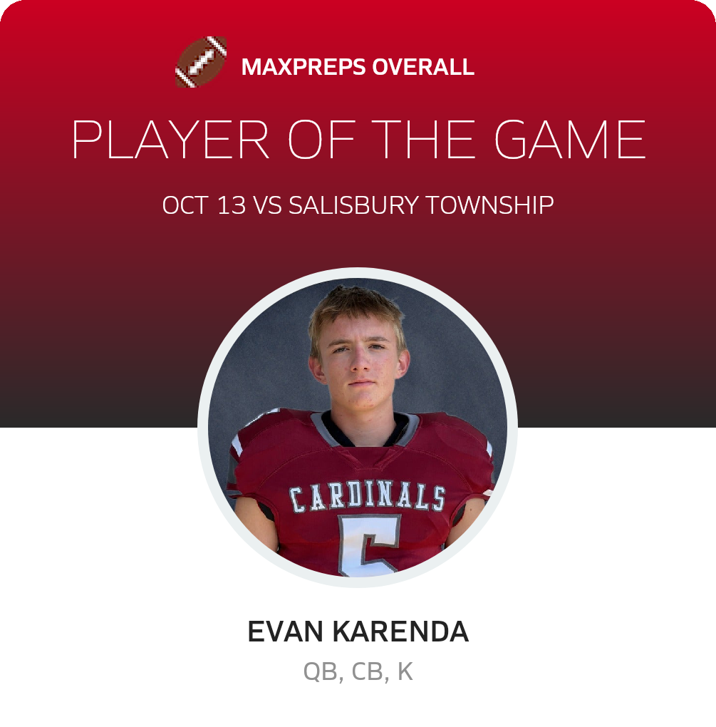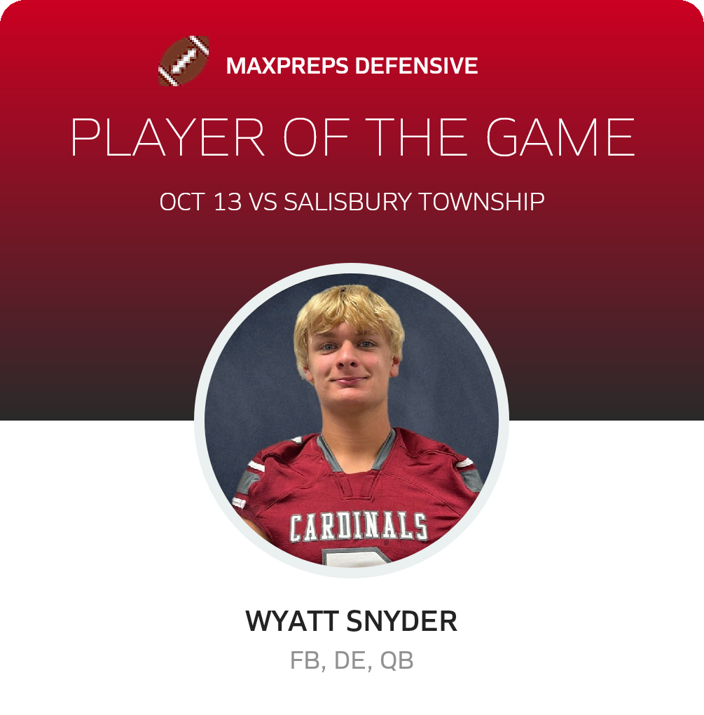 October 13, 2023: Pine Grove, PA 17963 The Pine Grove Cardinals (Pine Grove, PA) football overcame the visiting Salisbury Township Falcons (Allentown, PA), 31-0 in Friday's league bout.