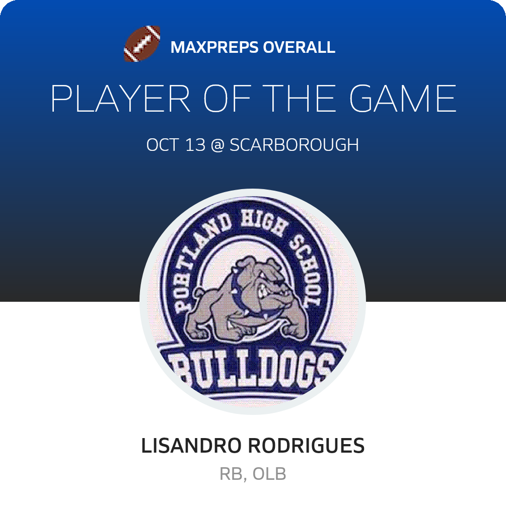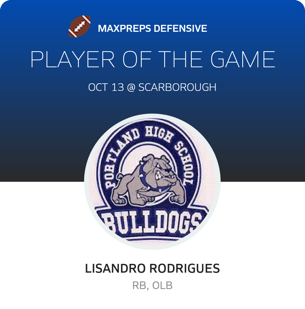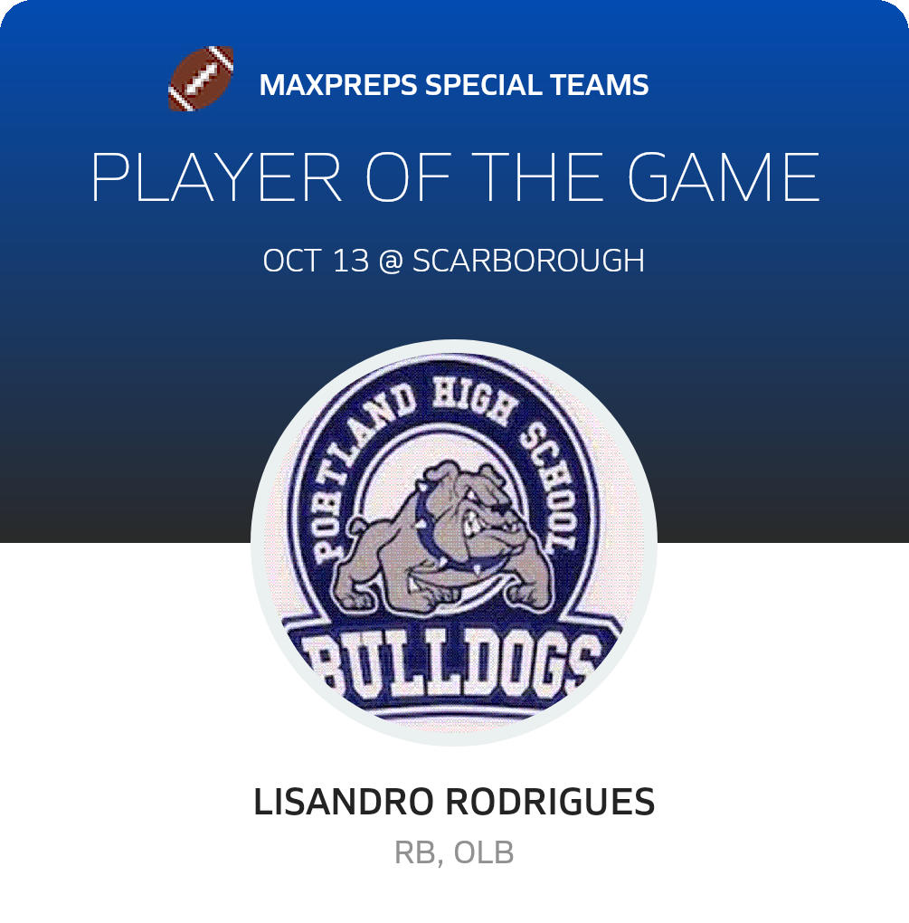 October 13, 2023: Scarborough, ME 04074 The Portland Bulldogs football squad scored 41 points and limited the host Scarborough Red Storm to 0 in the Bulldogs non-league win on Friday.