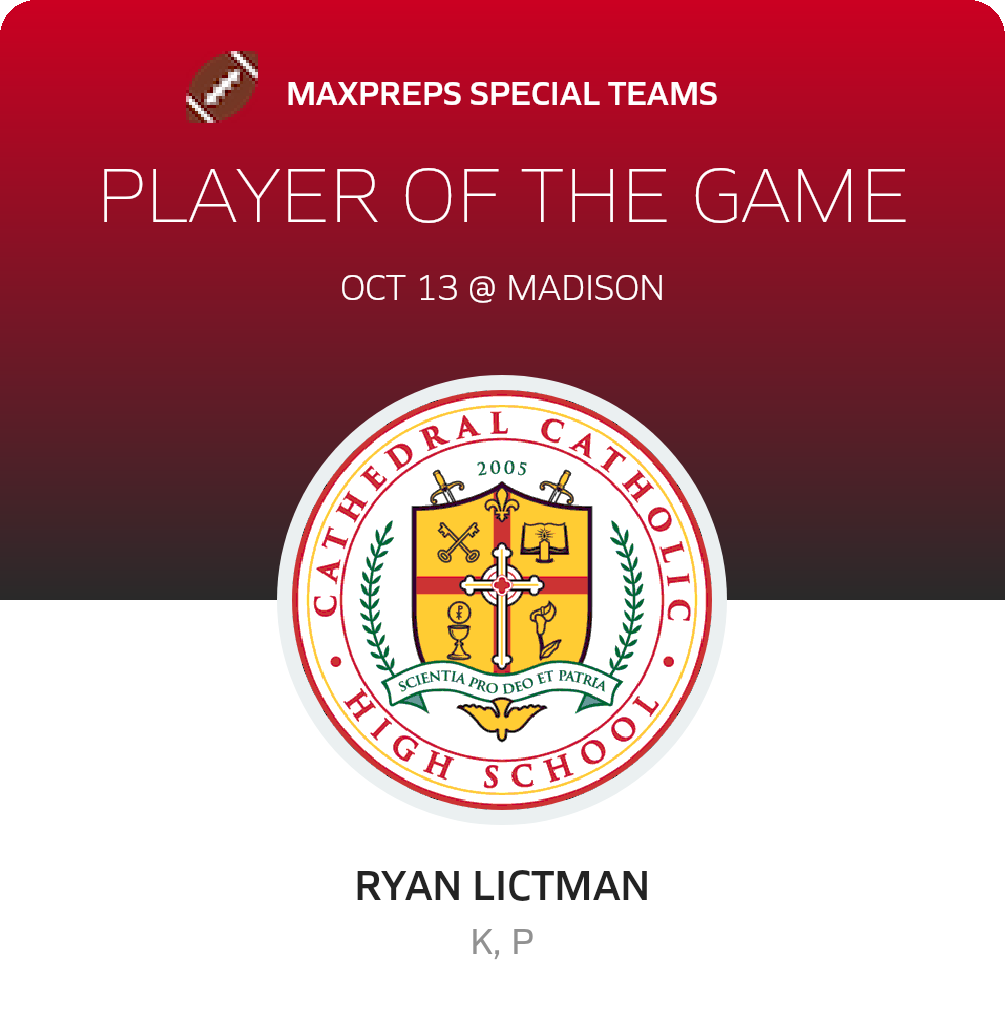 October 13, 2023: San Diego, CA 92117 The Madison Warhawks football team (San Diego, CA), was beaten 28-6 in Friday's league challenge with the visiting Cathedral Catholic Dons (San Diego, CA)