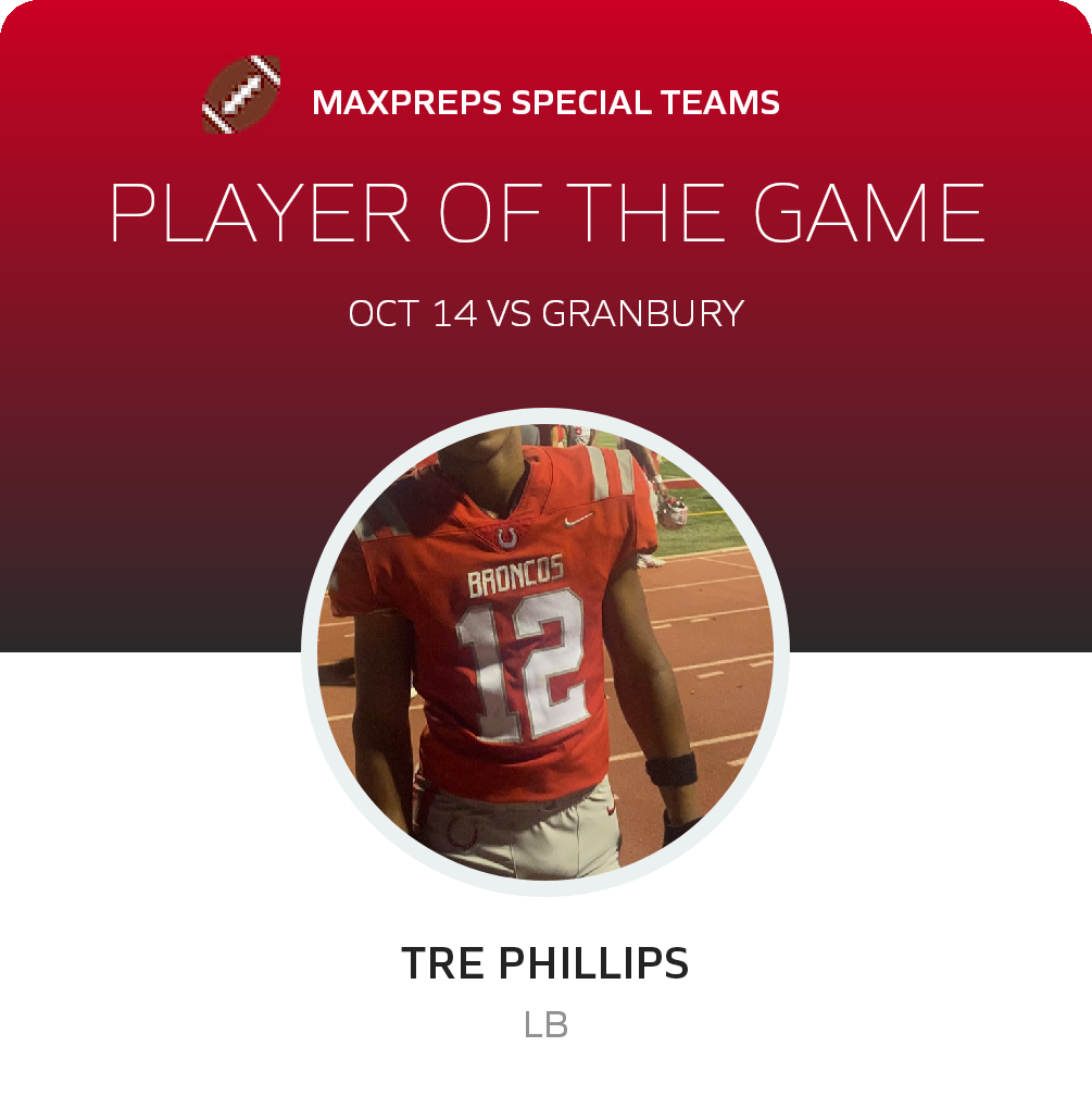 The Broncos now possess a 7-1 record. They play next when they travel to Midlothian for a 5A-1 Region I District 4 battle on Friday, October 21. Lake Belton will play a Panthers squad coming off a 56-7 league win over Granbury (Granbury, TX). The Panthers record now stands at 7-0.
