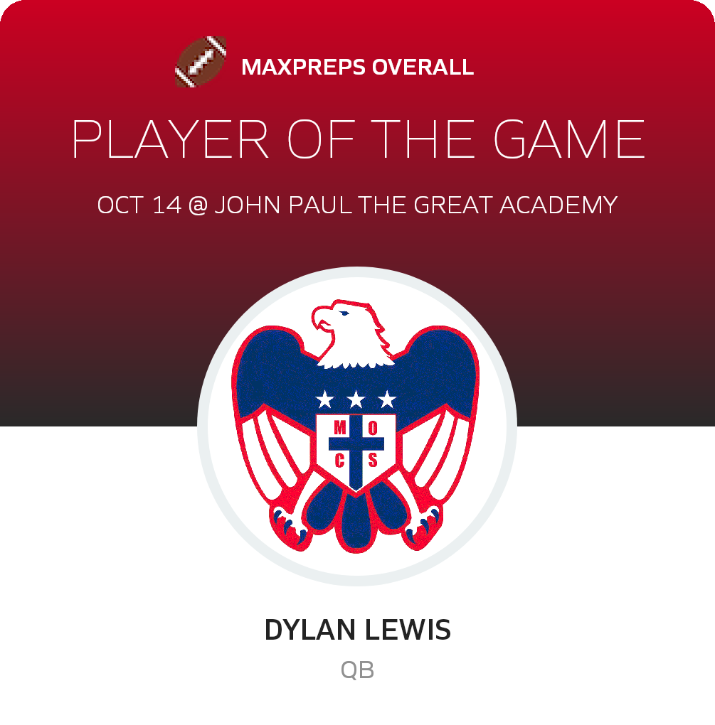 Congratulations to #2 DYLAN LEWIS for being selected the Overall Mount Olive Christian Football Player of the Game.