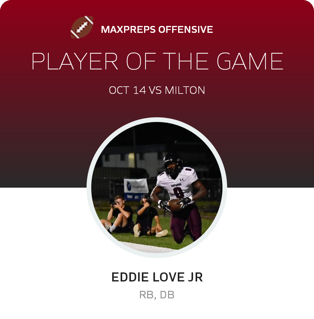 October 14, 2022: Navarre, FL 32566 The Milton Panthers football team (Milton, FL), was tipped 34-27 in Friday's league challenge with the host Navarre Raiders (Navarre, FL)
