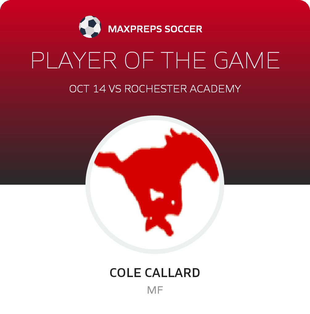 Congratulations to #9 Cole Callard for being selected the Medina Soccer Player of the Match.