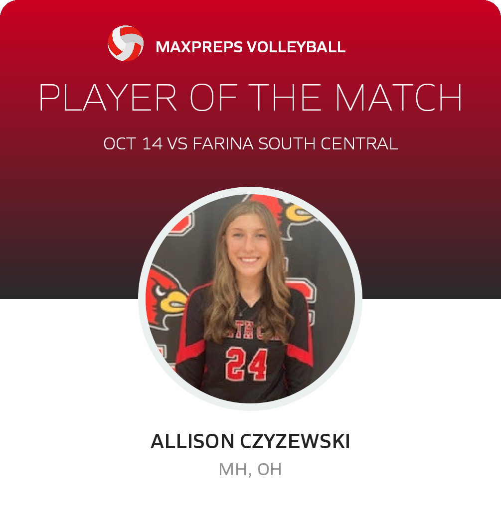 October 14, 2022: Farina, IL 62838 The Farina South Central Cougars (Farina, IL) volleyball overcame the visiting North Clay Cardinals (Louisville, IL), 2-0 in Friday's non-league outing.
