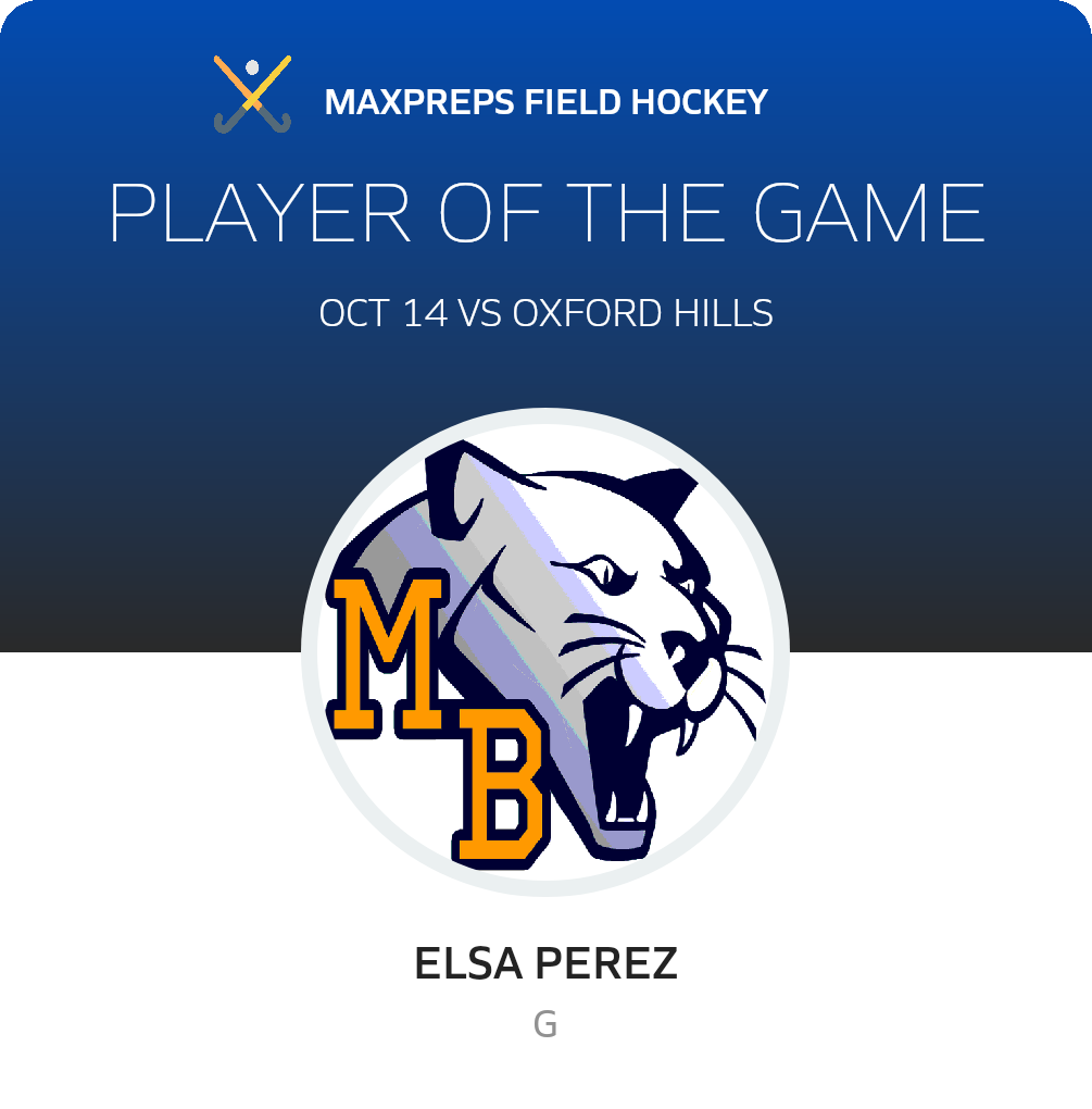 Congratulations to #52 Elsa Perez for being selected the Mt. Blue Field Hockey Player of the Game.