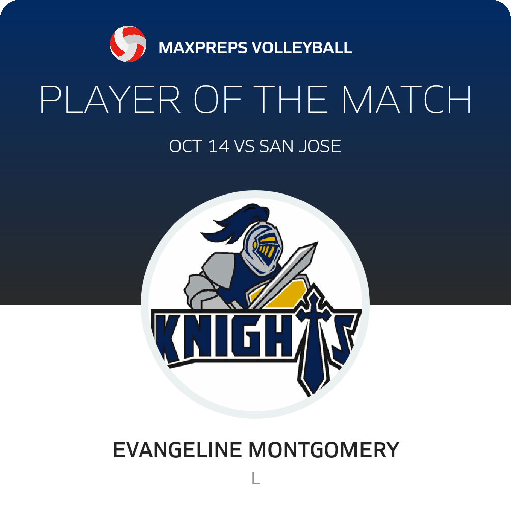 Congratulations to #1 Evangeline Montgomery for being selected the King's Academy Volleyball Player of the Match.